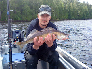 Har varit en del att göra sedan turen i söndags, men nu kommer rapporten. Vi var först vid rampen vid Tisaren, tidigt kan man säga. Vi förväntade oss samma fiske som sist men vad fel vi fick. Åkte ut till den platsen vi fiskat vid förut utan resultat. Vinden lös med sin frånvaro och allt kändes mycket svårare. Fiskade fram till lunch, Beo lyckades lura en gädda på dryga fyra kilo och jag två mindre gösar som fick gå tillbaka. På söndag blir det en tur igen, då med Dennis j som hovmästare. Hoppas dom kan vara mer på gång då, det är det som är det roliga med fisket, att man aldrig vet.